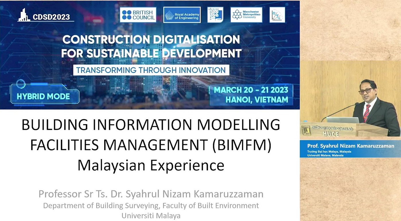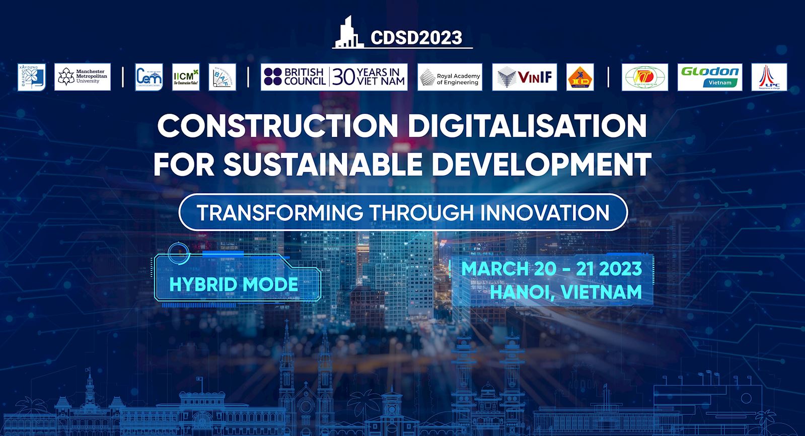 Trong các ngày 20 và 21/03/2023, Hội thảo CDSD2023 với chủ đề “Chuyển đổi số ngành xây dựng vì mục tiêu phát triển bền vững: Chuyển đổi thông qua đổi mới, sáng tạo” (Construction Digitalisation for Sustainable Development: Transforming through Innovation) đã diễn ra tại Trường Đại học Xây dựng Hà Nội (ĐHXD HN). Hội thảo được tổ chức với sự tài trợ của Hội đồng Anh, Học viện Kỹ thuật Hoàng gia (Vương quốc Anh), Quỹ Đổi mới Sáng tạo Vingroup (VinIF) (Việt Nam), Công ty Glodon Việt Nam, Công ty TNHH Xây dựng Lâm Phạm (Việt Nam).