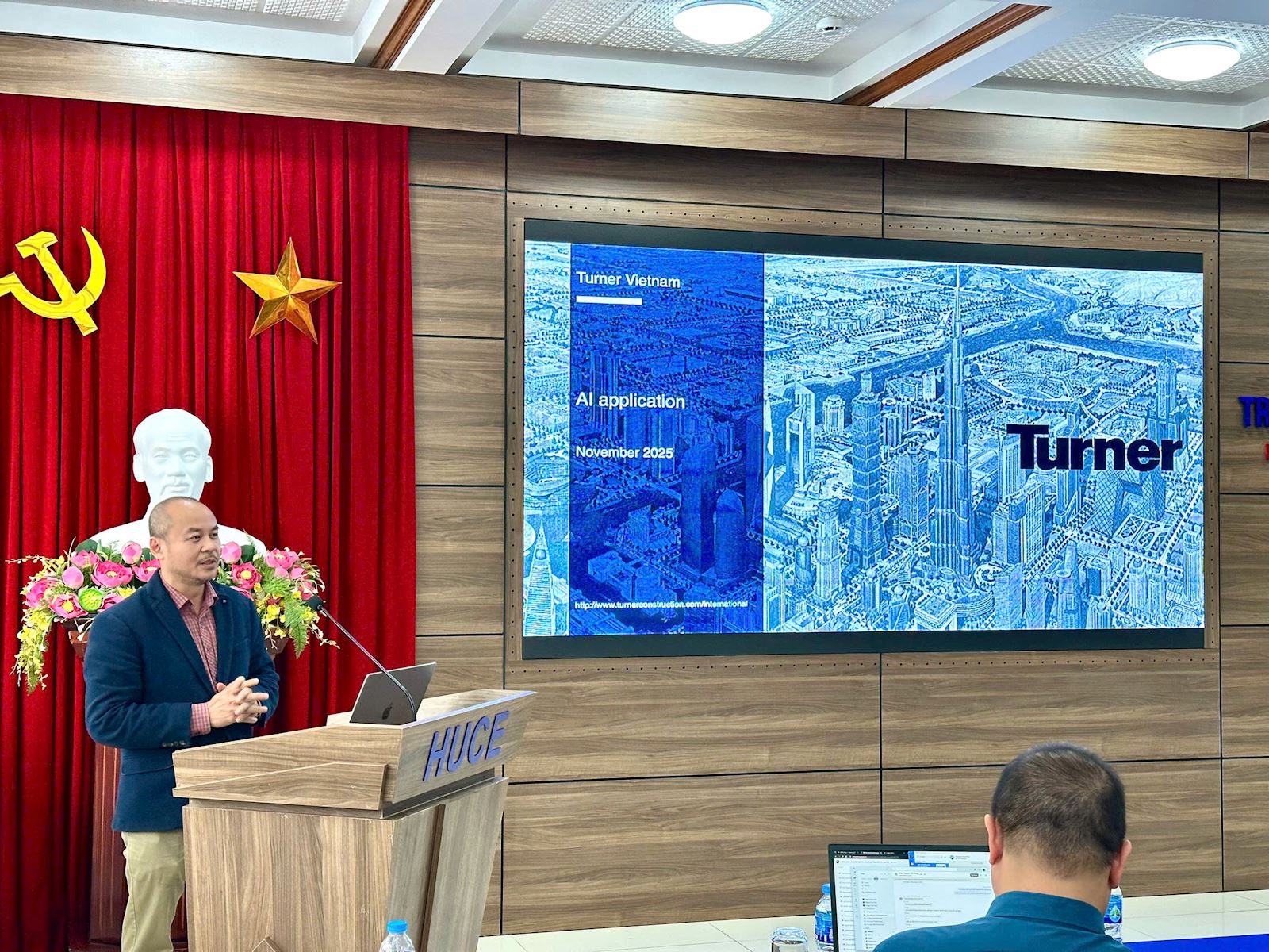 Mr. Hồ Vĩnh Anh - Tổng Giám đốc & Giám đốc Quốc gia Công ty TNHH Turner Việt Nam, chia sẻ kinh nghiệm ứng dụng AI vào trong quá trình giám sát, tổ chức thi công và các hoạt động quản lý đầu tư xây dựng của đơn vị: