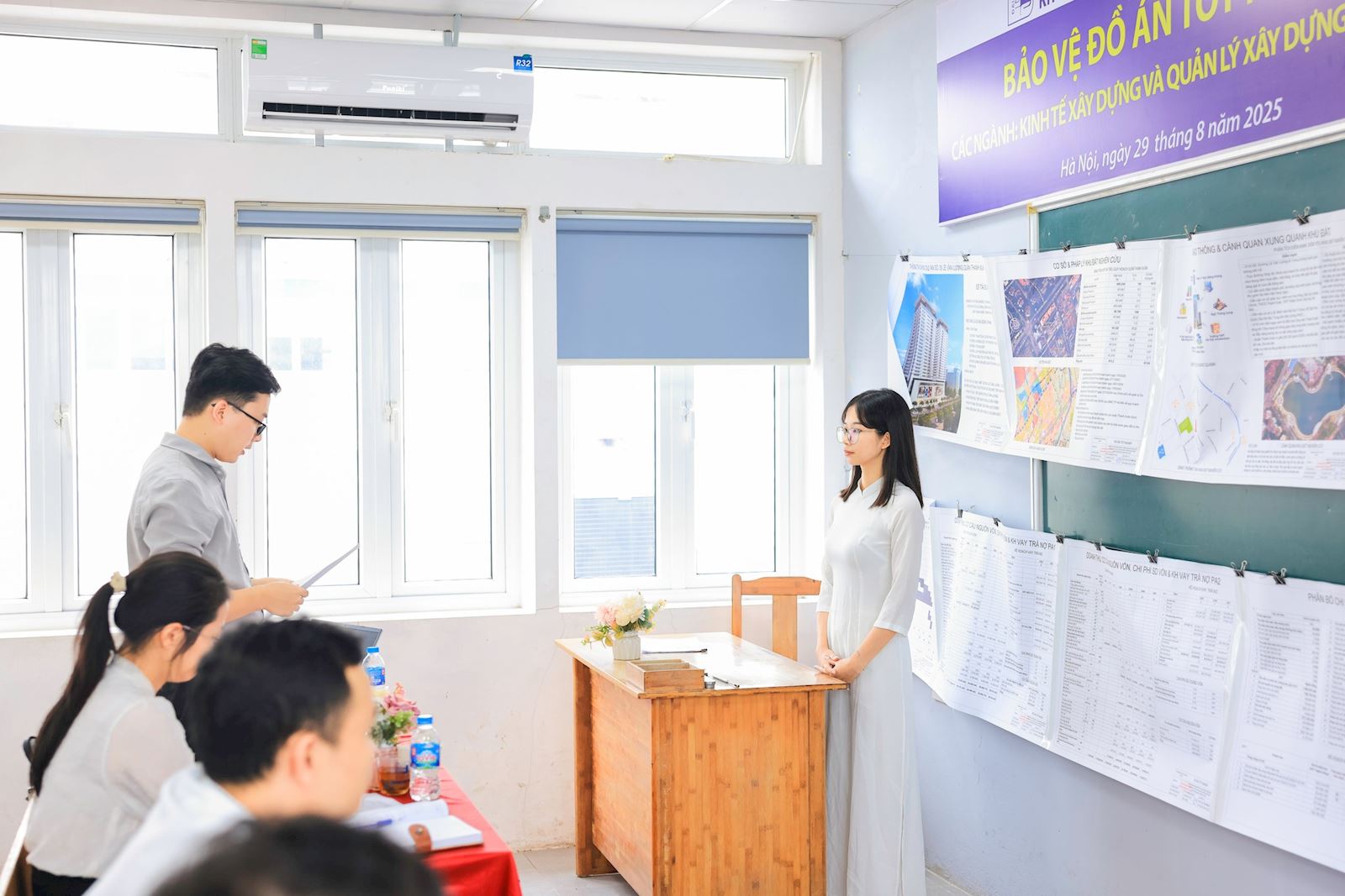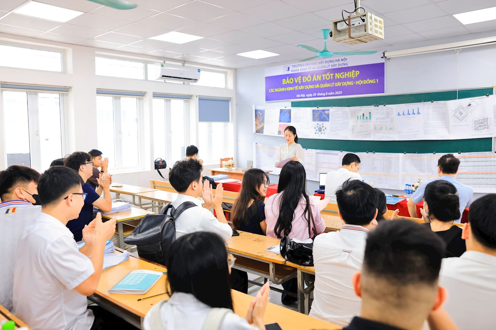 Trước thầy cô, bạn bè và gia đình, các anh chị sinh viên K66 đã thể hiện sự tự tin, bản lĩnh cùng vốn kiến thức chuyên môn đã tích lũy được trong suốt chặng đường 4 năm đại học. Mỗi bài trình bày không chỉ là kết quả của quá trình học tập, nghiên cứu nghiêm túc, mà đó còn là minh chứng cho sự kiên trì, sáng tạo và đam mê của các anh chị trong suốt hành trình thanh xuân tại Mái trường Xây dựng.